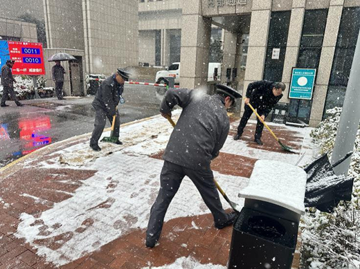 18日晚至次日凌晨,大雪停止后,為盡快消除冰雪對路面造成的安全隱患,保安中隊立即啟動極端天氣應急預案,組織全體隊員開展鏟雪除冰工作,保障警務中心大院內各道路暢通。早晨5點,隊員們拿著鐵鍬、雪鏟等工具,發揚不怕苦、不怕累的精神,頂著凜冽的寒風清掃冰雪,不畏嚴寒、分工有序,對大院內所有主干道及進出口的積雪進行了徹底清理。積雪清除后,中隊密切關注天氣變化,加強聯勤聯動和巡邏工作,特別是易結冰路段的隱患排查力度,全力護航警務中心內部道路安全暢通,用實際行動展現了責任和擔當。