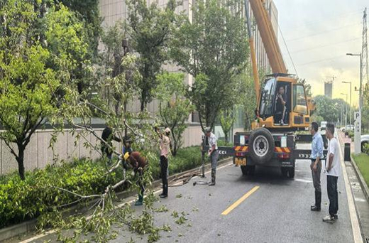 臺風“貝碧嘉”登陸后,伴隨著大暴雨和強風的侵襲,道路開始出現積水,部分低洼地帶出現了小型的洪澇現象,樹木被連根拔起,欄桿和宣傳牌也出現移位脫落現象。保安中隊迅速作出反應,立即投身于緊急的搶險救援行動中,不懼暴雨侵襲,爭分奪秒、冒雨蹚水,疏通被堵塞的排水系統,齊心協力清除阻礙道路的樹枝。面對部分區域遭遇水淹的情況,中隊積極采取措施排除積水,迅速有效地解決了積水問題,為大院內外的安全有序筑起了一道道堅固防線。次日,中隊聯系了大型切割機械,對倒伏歪斜的樹木進行了修剪和清理工作,全力保障了院內所有主要道路及出入口均保持暢通無阻,得到了警務中心各級領導的肯定。